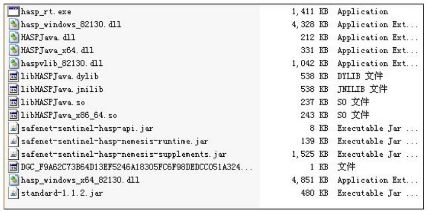 war 包加密后,產生的文件相對較少,此處只需要將原來移出的 jar 包和.class 文件重新加入,部署時將 safenet-sentinel-hasp-api-j2ee.jar 放入$CATALINA_HOME/lib 目錄下。