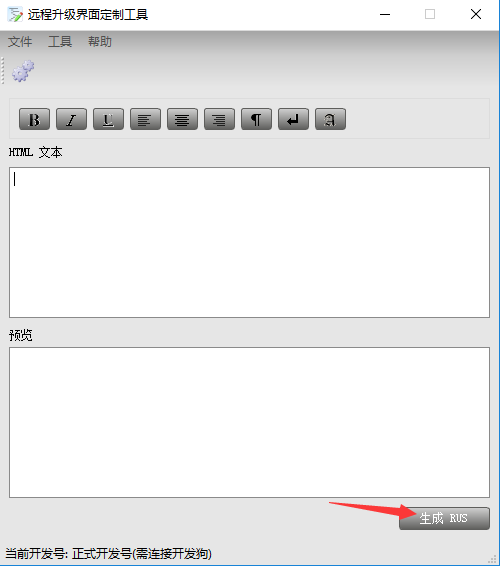 在上面菜單的工具項(xiàng),選擇【設(shè)置】,勾選【使用正式開發(fā)號(hào)】,插上主鎖后點(diǎn)【生成RUS】