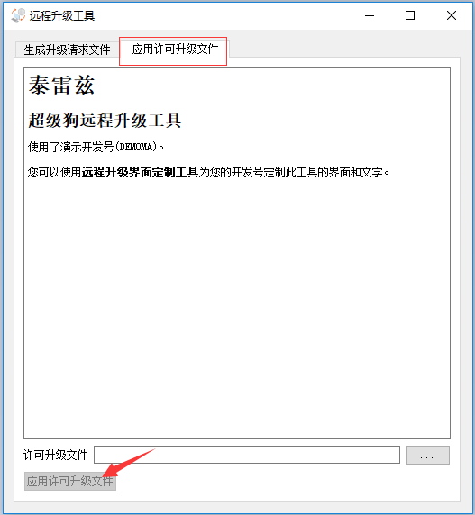 在客戶電腦上打開之前生成的RUS軟鎖安裝工具,選擇【應(yīng)用許可升級(jí)文件】項(xiàng)