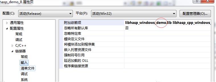 2、C++開發(fā)語言的修改過程:用記事本打開正式號密鑰文件xxxxx.hvc,把內容全部復制,找到示例目錄中的vendor_code.h文件,把hvc文件中的內容替換到“unsigned char vendorCode[] =”后面的引號中,然后點擊“項目”-“屬性”,在"Link"的輸入項中添加依賴庫libhasp _windows_xxxxx.lib,并把原來的依賴庫libhasp _windows_demo.lib刪除,然后重新編譯生成即可。注意這個libhasp _windows_xxxxx.lib庫應同時拷貝至工程文件所設置的依賴庫目錄列表中。然后重新編譯示例即可運行。